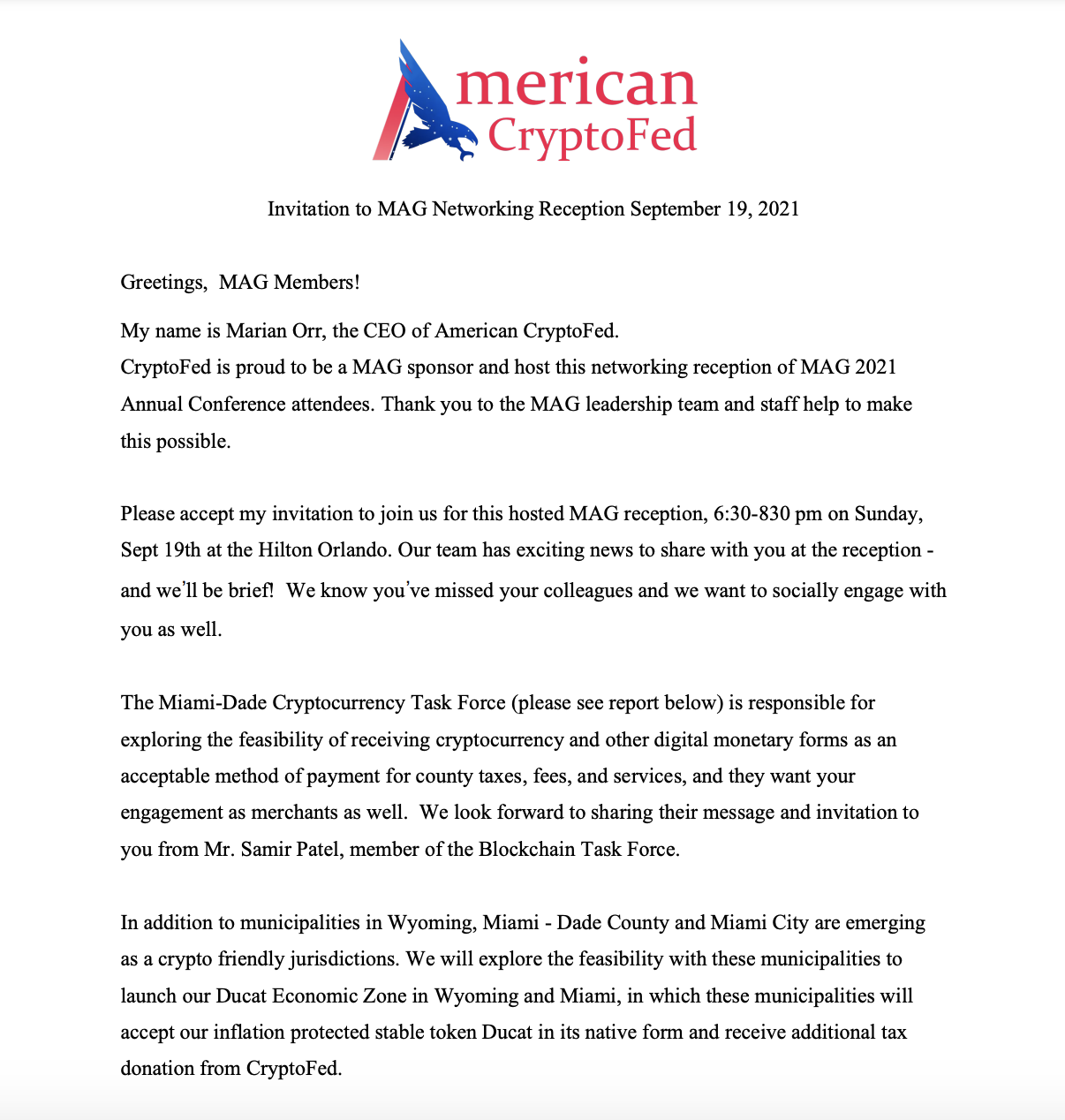 MAG Networking Reception Letter